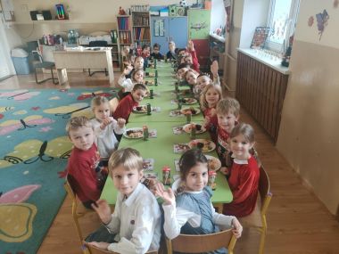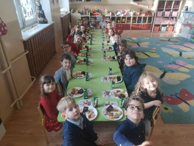 17 grudnia w Grupie IV obchodziliśmy przedszkolną Wigilię. Były życzenia, łamanie się opłatkiem, śpiewanie kolęd oraz wigilijny poczęstunek przygotowany przez rodziców.