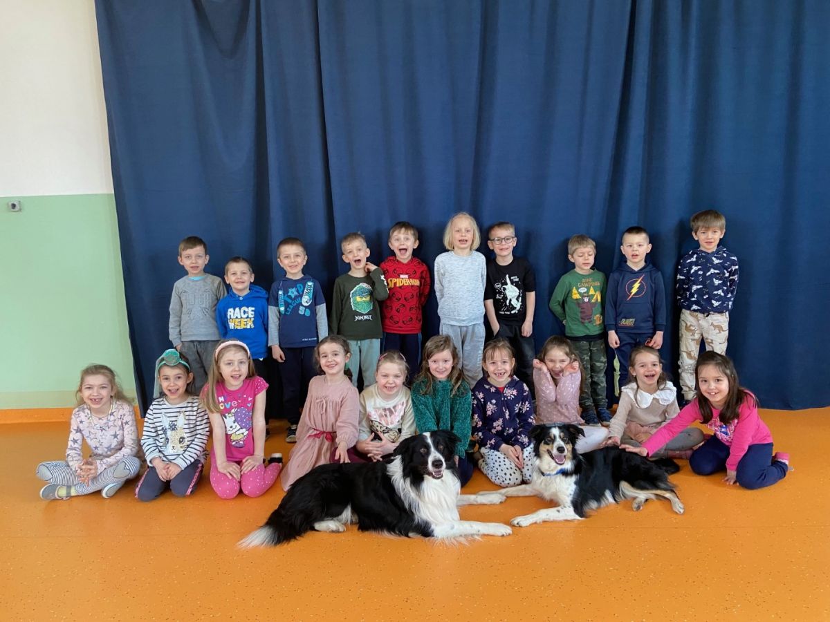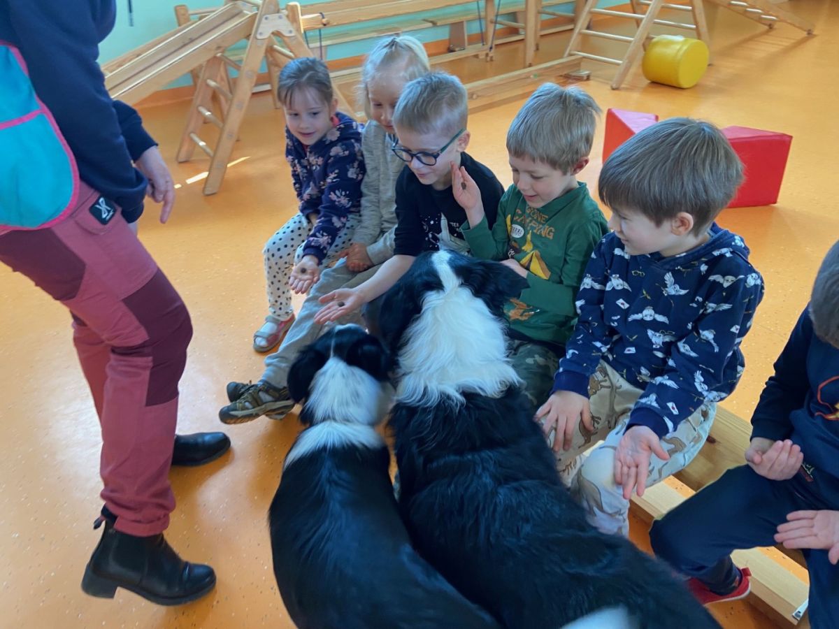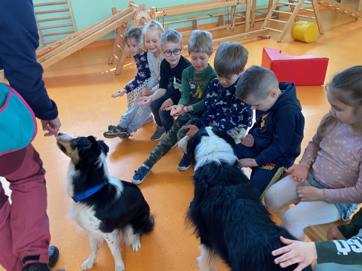 W czasie zajęć 4 kwietnia dzieciaki mogły osobiście doświadczyć łagodności psów, które cierpliwie słuchały wydawanych im poleceń.