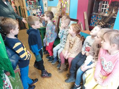 Tematem przewodnim były Pucheroki. Dzieci dzięki pani Annie Sobczyk poznały historię tej pięknej tradycji, następnie wykonały samodzielnie czapkę Pucheroka. Potem bardzo chętnie same wybierały książki do oglądania, były tak nimi zafascynowane, że ciężko było im wrócić do przedszkola.