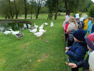 Po przyjeździe czekało na nas tam wiele atrakcji, od razu zostaliśmy zaproszeni na pyszne śniadanie, następnie przygotowywaliśmy pachnące rogaliki z powidłami, udaliśmy się na spacer, podczas którego podziwialiśmy sady, grządki oraz liczne zwierzęta z gospodarstwa domowego. Oprócz tych atrakcji, czekało nas kiszenie kapusty, karmienie zwierząt i składanie uli.