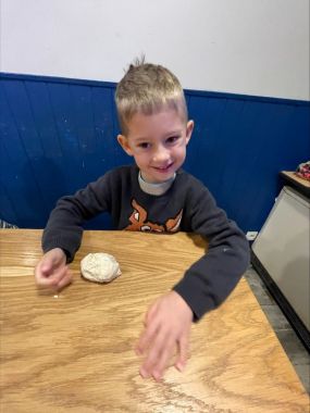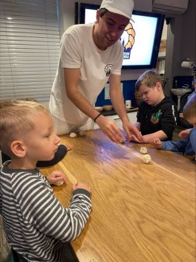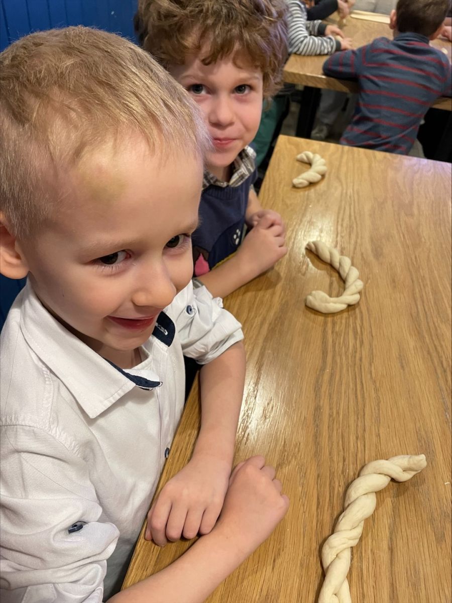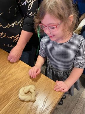 Przedszkolaki miały okazję poznać historię i tajniki wypieku tradycyjnych obwarzanków krakowskich - każdy samodzielnie wyrobił kęs ciasta, uformował sulki i ułożył je w obwarzanek. Nasze obwarzanki zabraliśmy do przedszkola, a potem do domów, na pamiątkę.