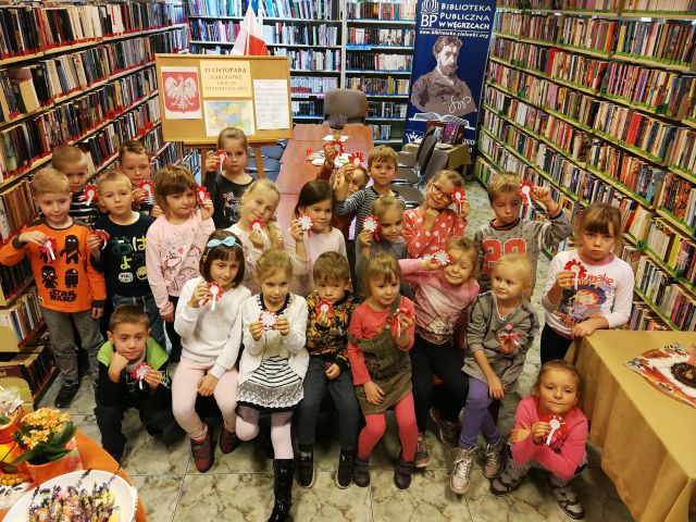 Zajęcia biblioteczne grupy VI z okazji 100 rocznicy Odzyskania Niepodległości w ramach DKK - 5.11.2018 r.